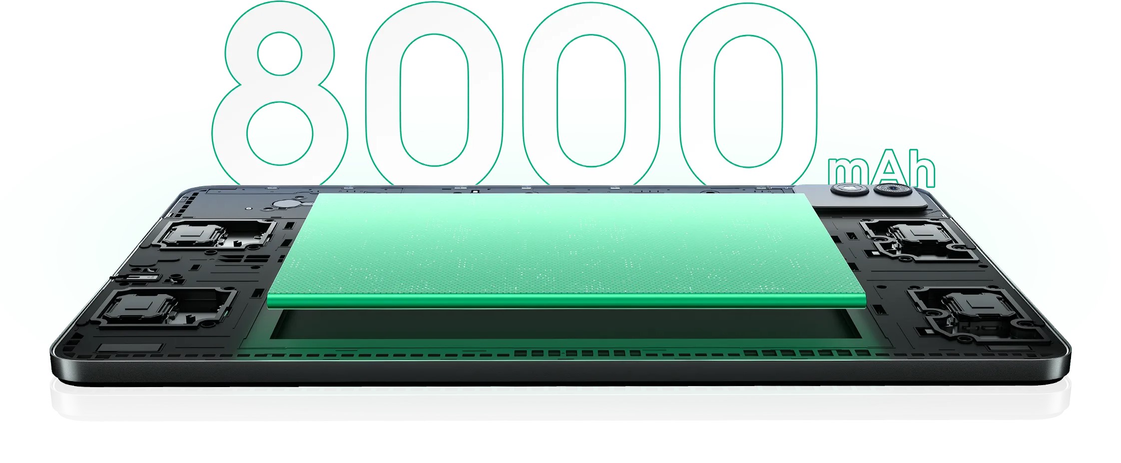 Заряжайте TECNO Megapad 11 реже и успевайте больше с энергоёмким аккумулятором 8000 мАч. Комплектная зарядка 18 Вт за короткий срок пополнит запас энергии.
