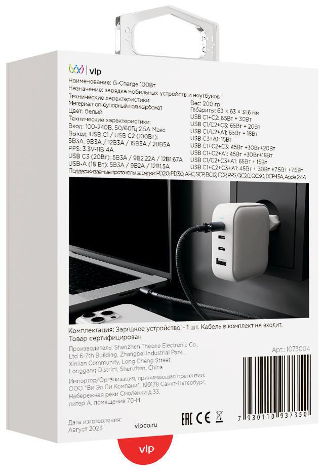 | Разъем на блоке ЗУ | 1xUSB-A, 3xUSB-C |