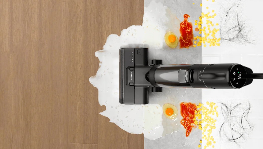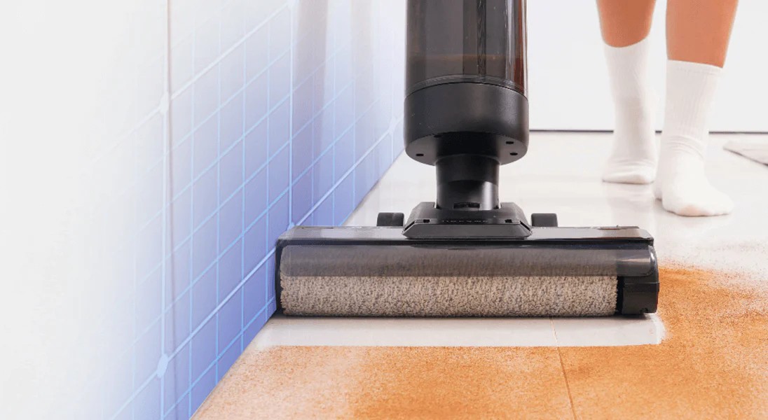 В комплекте — роликовая турбощётка с подсветкой, которая помогает видеть пыль даже в тёмных местах. Пылесос поддерживает влажную уборку: резервуар на 0,9 л позволяет протирать полы, не оставляя разводов.