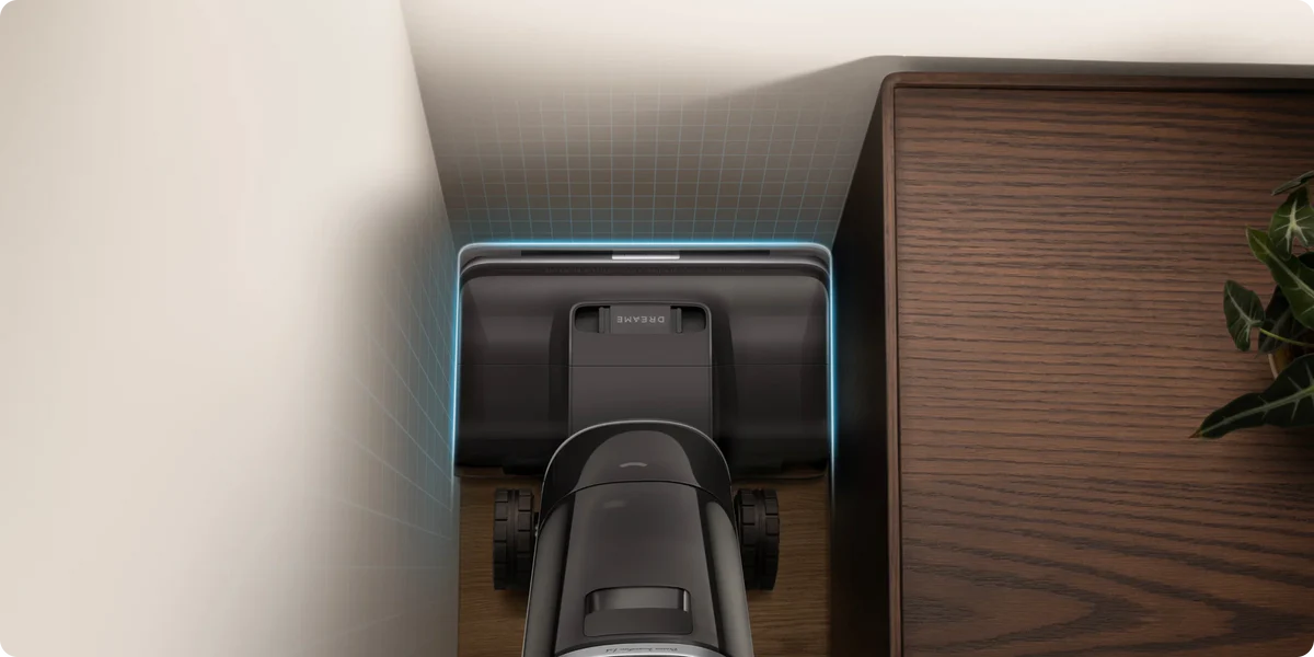 Встроенная роботизированная рука определяет приближение к плинтусу и опускается для более тщательного сбора мусора вдоль стен.