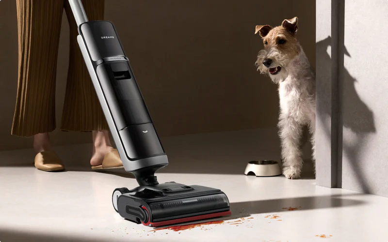 Вертикальный моющий пылесос Dreame H15 Pro Heat выполнен из ударопрочного пластика черного цвета. Устройство предназначено для комплексной уборки: сухого сбора мусора, мытья полов, ковровых покрытий и быстрой сушки поверхностей.