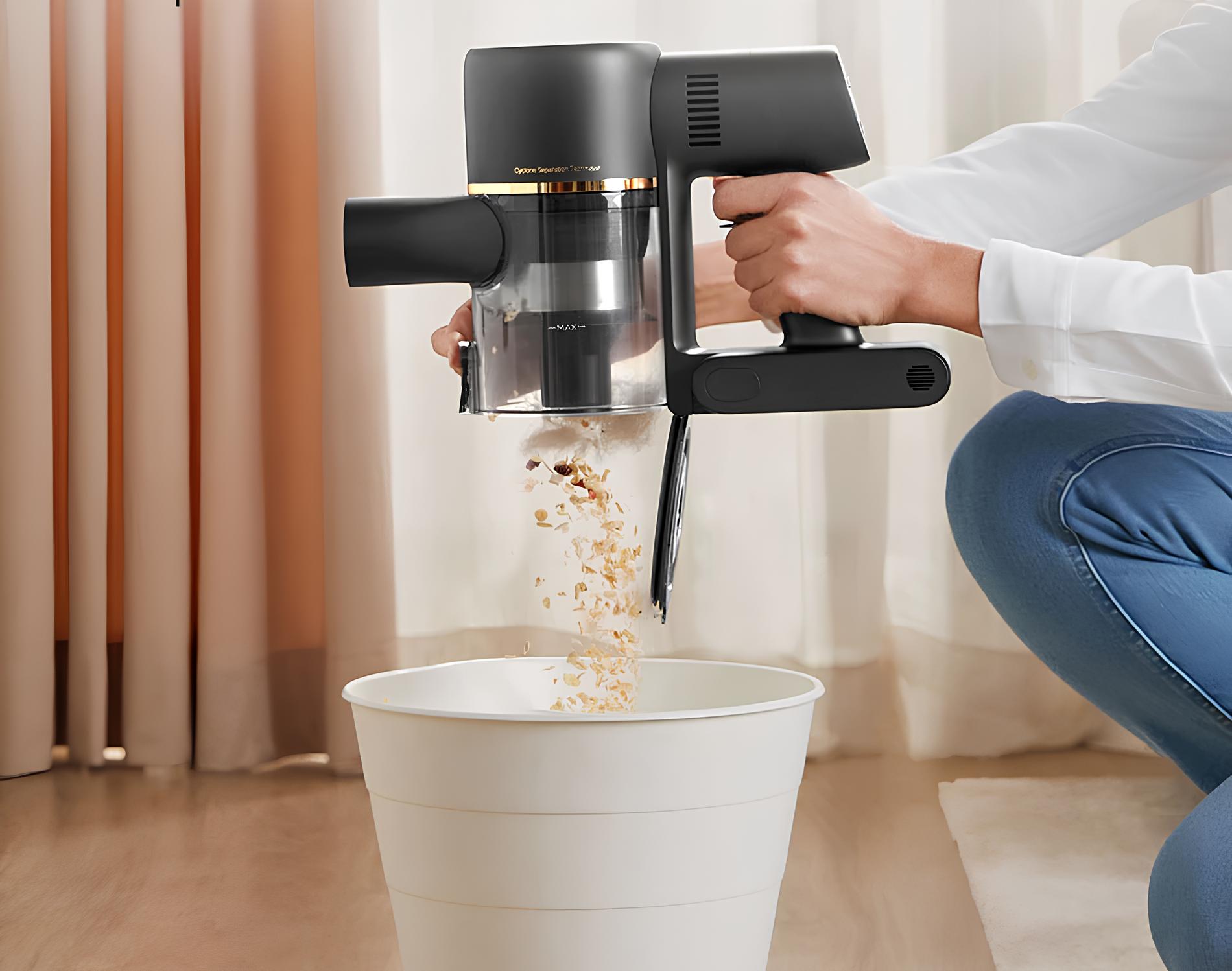 Эффективность уборки достигается благодаря высокоскоростному бесщеточному двигателю, обеспечивающему мощность всасывания 150 аэроватт (20000 Па) и надежное удаление волос, грязи, пыли и мелкого мусора.