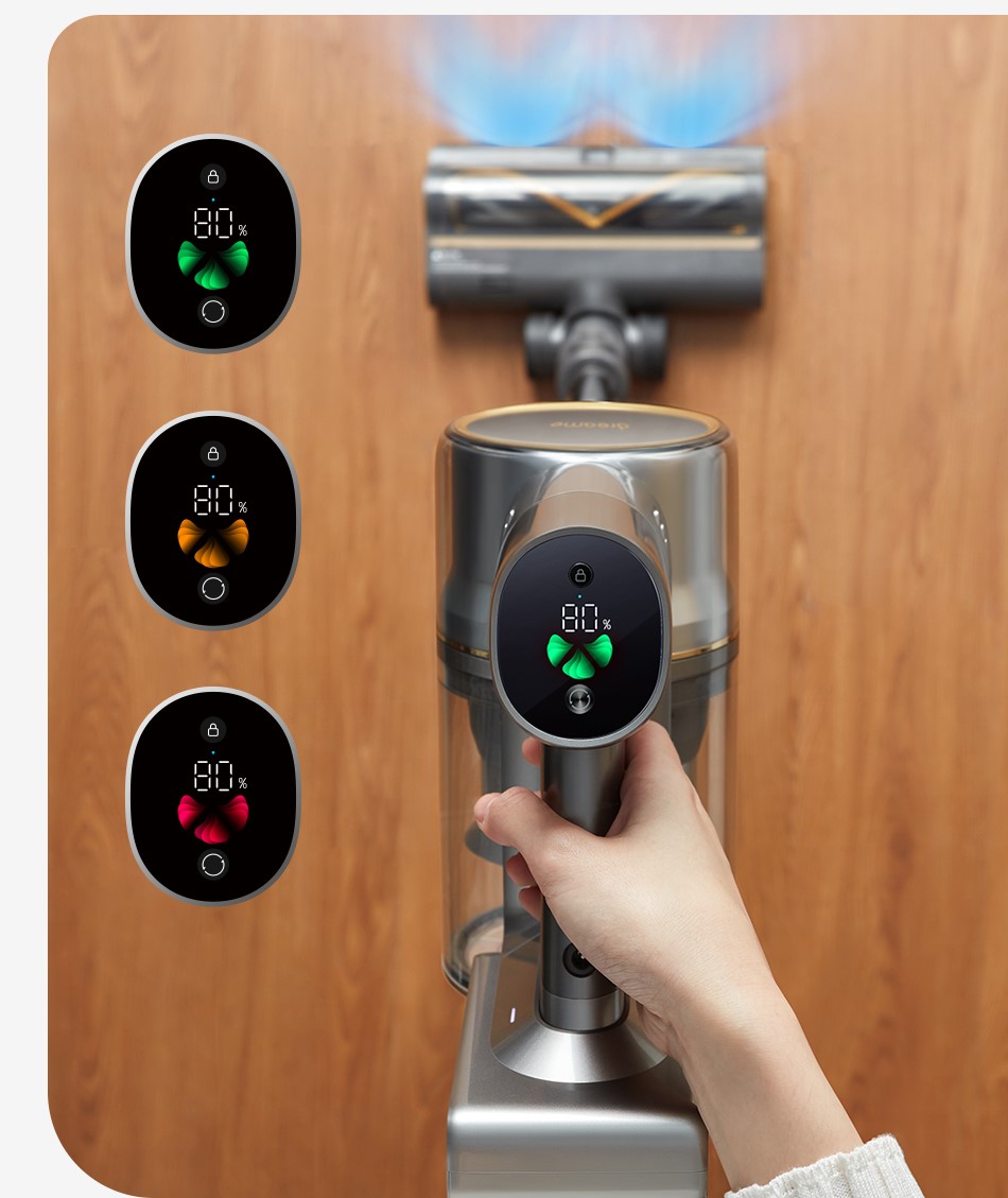 В Dreame R20 встроен интуитивно понятный цветной дисплей. Статус уборки отображается в реальном времени.