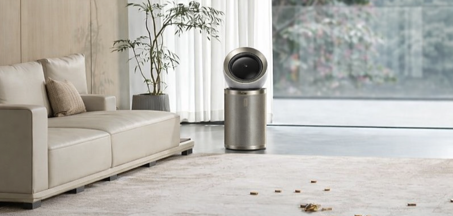 Очиститель рассчитан на помещения площадью до 100 м². Максимальный воздухообмен — 300 м³/ч при потребляемой мощности 33 Вт. Поток очищенного воздуха распространяется на расстояние до 10 метров, поэтому устройство подходит для гостиных, студий и офисных пространств. Угол подачи воздуха регулируется и может меняться от направленного режима до полного охвата комнаты с разворотом на 180°.