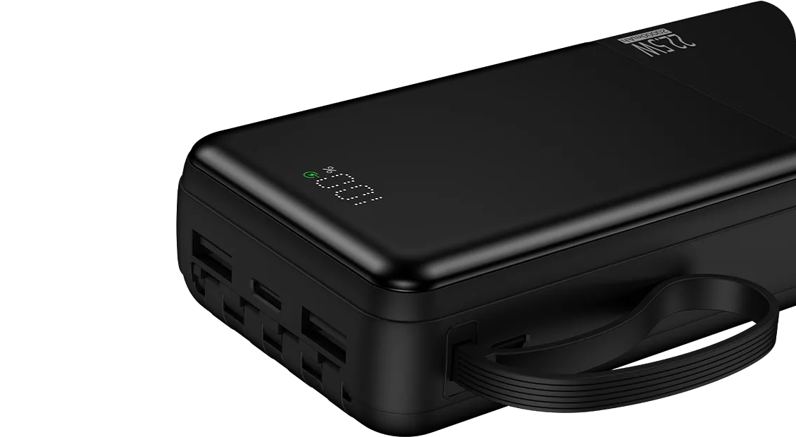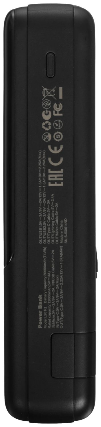 Емкость аккумулятора составляет 20 000 мАч, что позволяет несколько раз зарядить мобильные устройства или поддерживать их работу в течение длительного времени. Такой запас энергии подходит для путешествий, командировок и активного использования техники в течение дня.