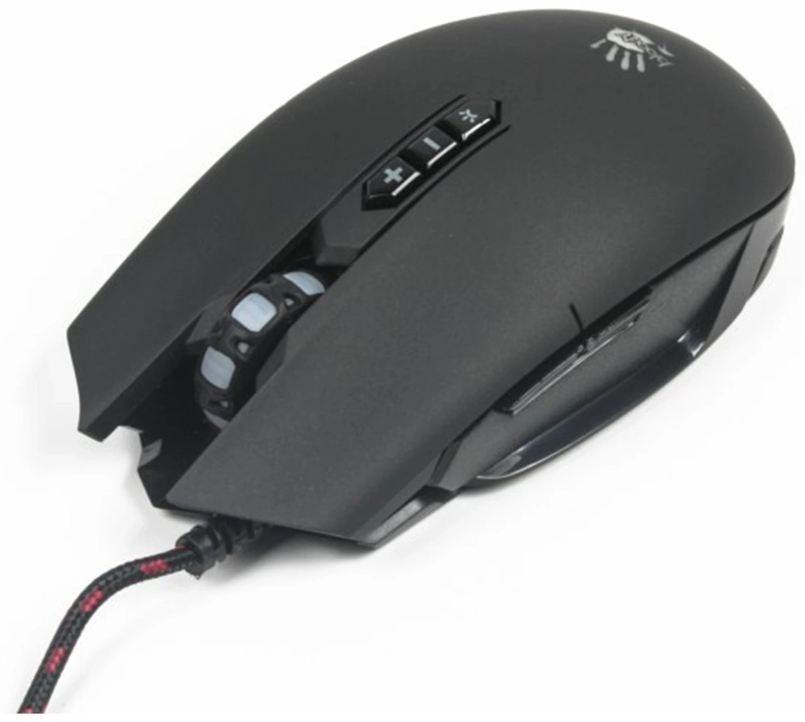 Проводная мышь подключается к ПК через USB-порт, провод длиной 1,8 м не сковывает движений и отличается долговечностью благодаря прочной оплётке. На корпусе есть восемь программируемых кнопок и колесо прокрутки.