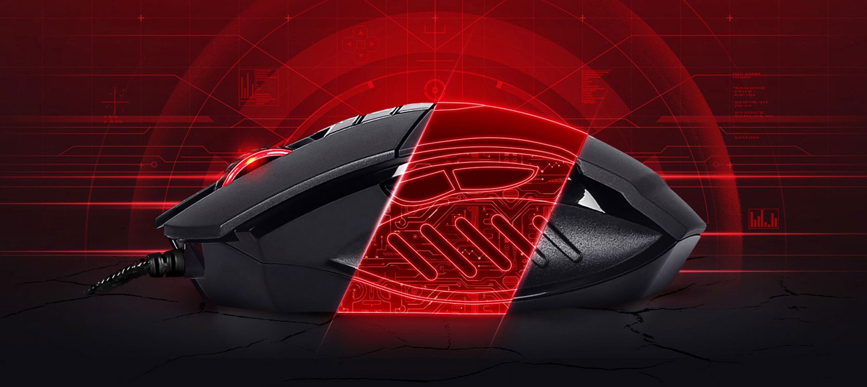В конструкции мышки присутствуют 8 механических кнопок, среди которых клавиши, запрограммированные на мгновенный доступ к игровым функциям, дополнительные кнопки, обеспечивающие быструю смену режимов стрельбы во время игры, и колесо прокрутки. Все они обеспечивают оперативную реакцию мыши на действия пользователя.