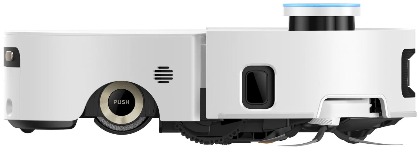 Dreame Aqua 10 Ultra Roller Complete выполнен в современном минималистичном стиле и имеет компактный корпус высотой 9.7 см. Благодаря низкому профилю робот легко проходит под мебелью и не застревает в узких зонах. Корпус изготовлен из прочного пластика, устойчивого к царапинам и ежедневным нагрузкам. Колеса с амортизацией обеспечивают плавное движение по плитке, ламинату и ковровым покрытиям, а вес 3.65 кг помогает роботу уверенно удерживать контакт с поверхностью.