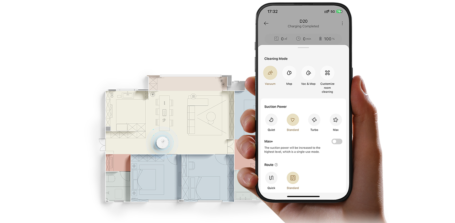 Настраивайте расписание, выбирайте режимы уборки, контролируйте состояние расходников и управляйте роботом голосом — всё это возможно благодаря удобному приложению и поддержке популярных голосовых ассистентов. Dreame D20 Pro — ваш умный помощник, всегда готовый к работе.