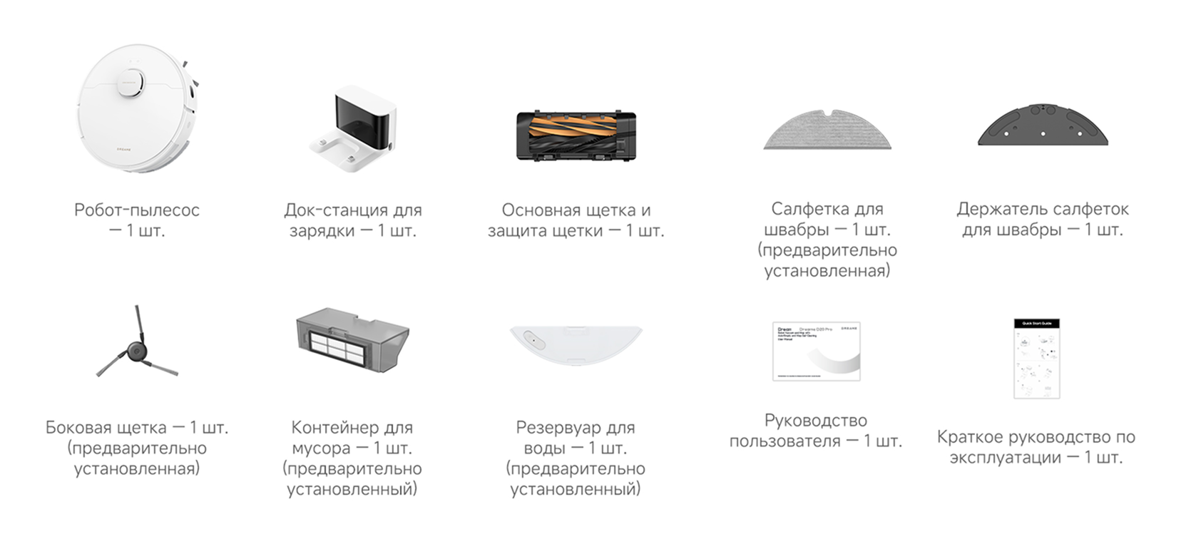 | Комплектация | робот-пылесос, док-станция, документация, инструмент для очистки, кабель питания, контейнер для влажной уборки, салфетка для влажной уборки |