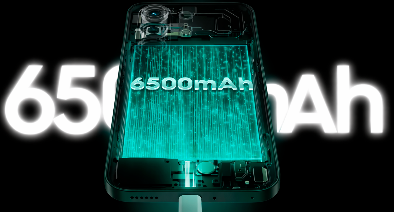 Аккумулятор емкостью 6500 мАч позволяет дольше пользоваться смартфоном без частой подзарядки. Для зарядки используется USB Type-C, есть поддержка быстрой зарядки, технология обходной зарядки и функция проводной обратной зарядки. Это делает модель особенно удобной для активного повседневного использования.