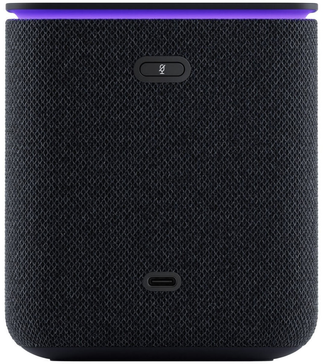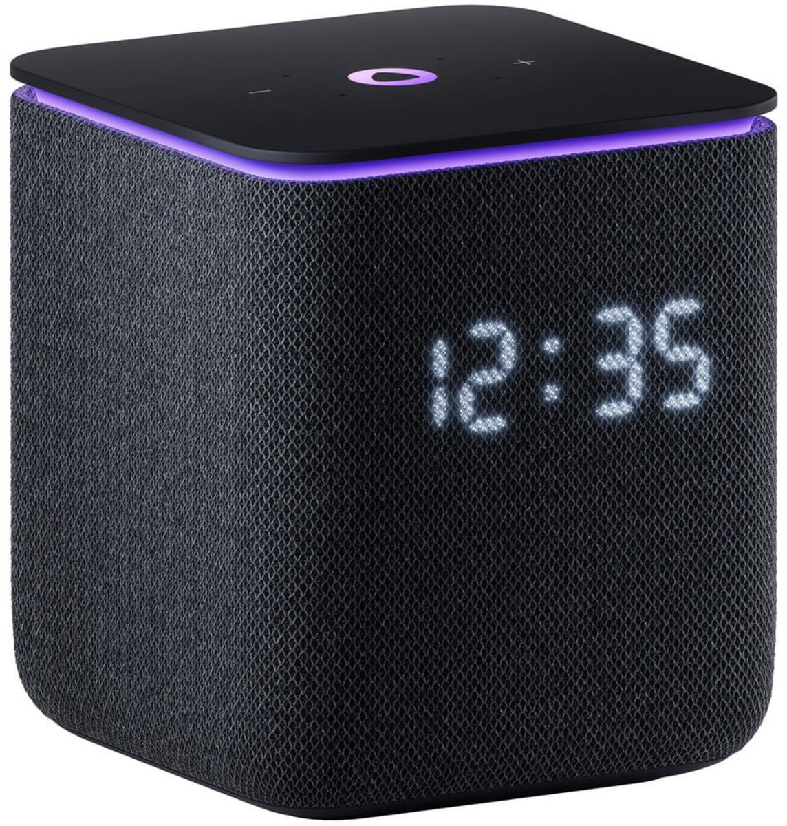 Приятный корпус с тканевой отделкой, доступный в разных расцветках текстильной части, не только придает колонке стильный внешний вид, но и создает приятные тактильные ощущения. Он также защищает динамики и слегка смягчает звук, а встроенный экран эффектно светится прямо на текстильной стороне.