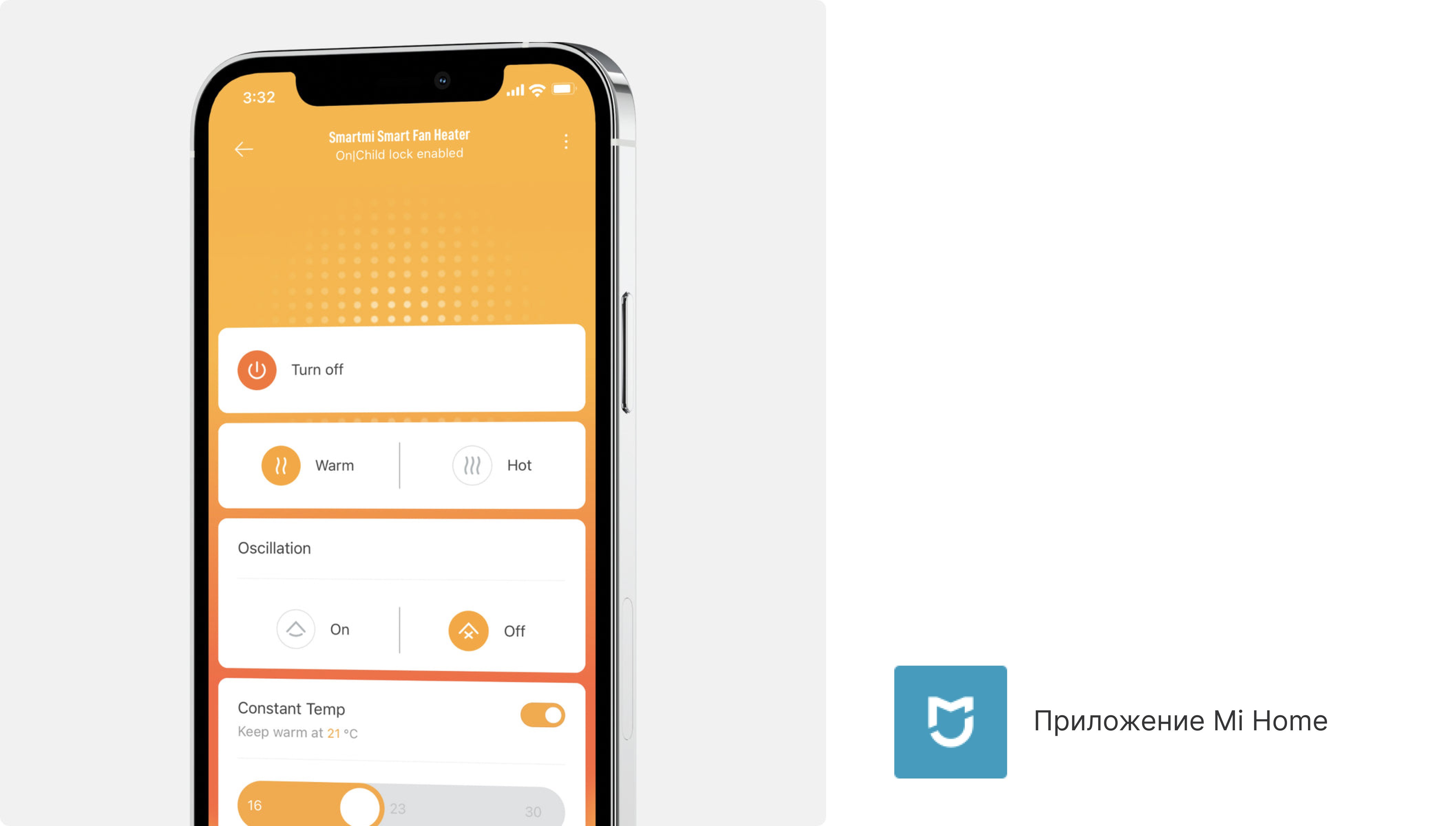 Обогреватель работает с приложением «Mi Home / Xiaomi Home». Запланируйте запуск, выходя из офиса, и наслаждайтесь теплом, когда вернетесь домой. Контролируйте температуру, не покидая объятий пледа или одеяла.
